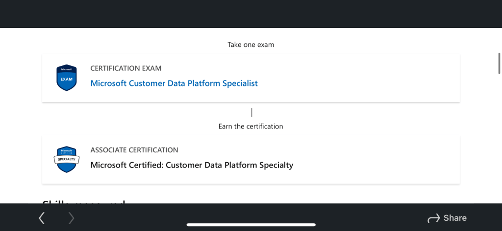 The Microsoft Certified: Customer Data Platform Specialty certification is available now with the MB-260: Microsoft Customer Data Platform Specialist exam.