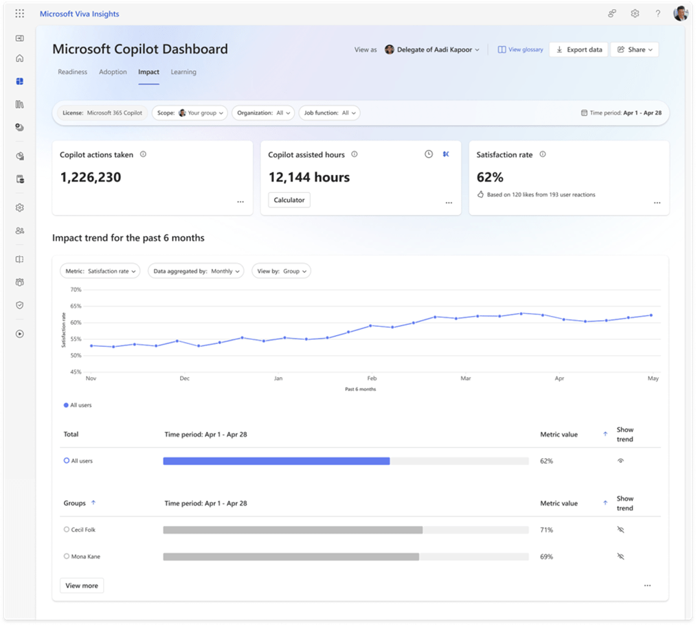 Tracking Satisfaction, intent and usage with Copilot Dashboard – Rolled Out in March