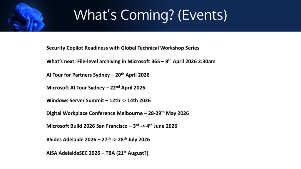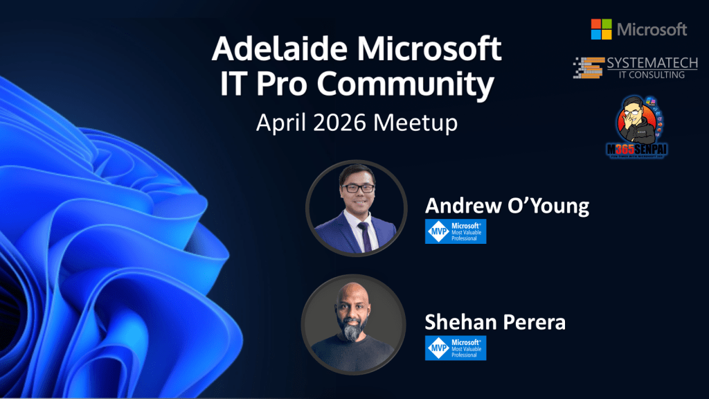 As promised, here are the links and slide decks for the topics covered during the Adelaide Microsoft IT Pro Community User Group Meetup on the 7th April 2026.